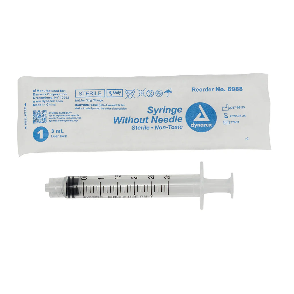 3cc Syringe, Luer Lock, 100/Box - Dynarex