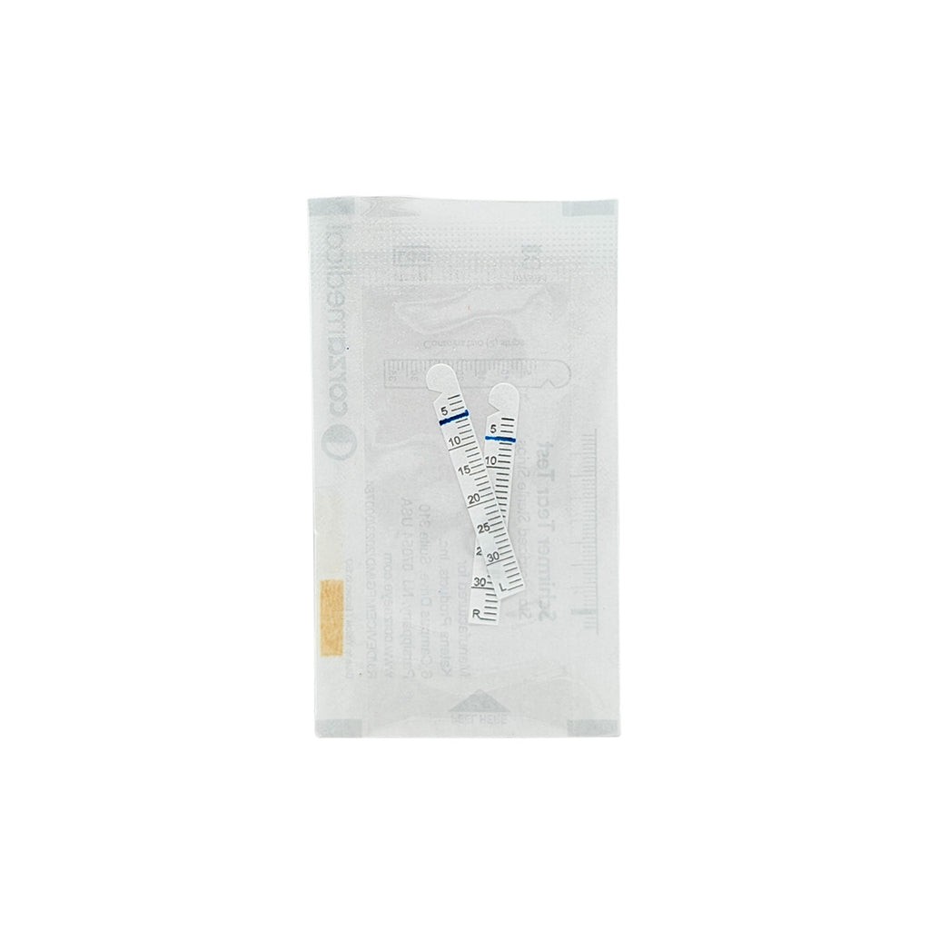 Sterile, standardized Schirmer Tear Test strips with a pre-printed tear flow scale and soft strip material suitable for use in either eye. Supplied as 2 strips per pouch, 50 pouches per box.