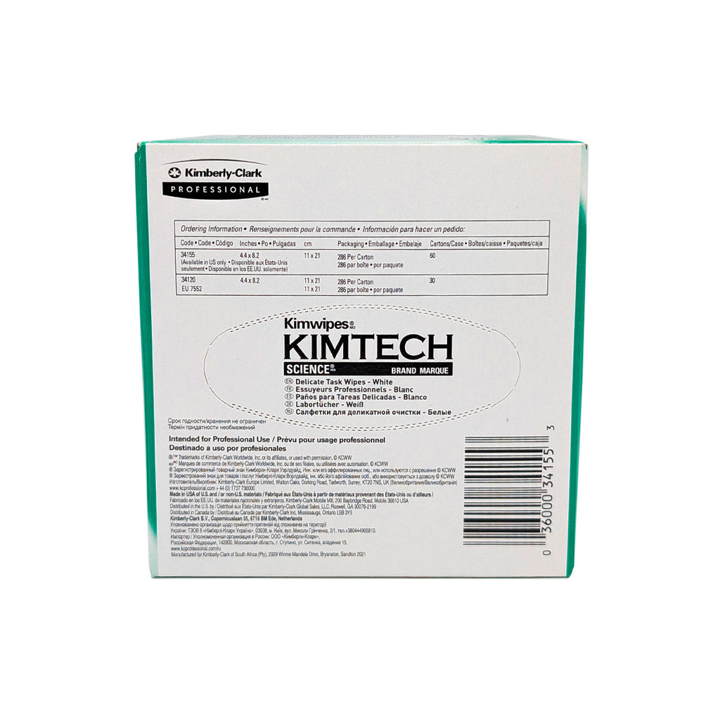 Kimwipes delicate task tissues for gentle wiping and cleanup of lenses, instruments, and surfaces. Packaged 286 per box.