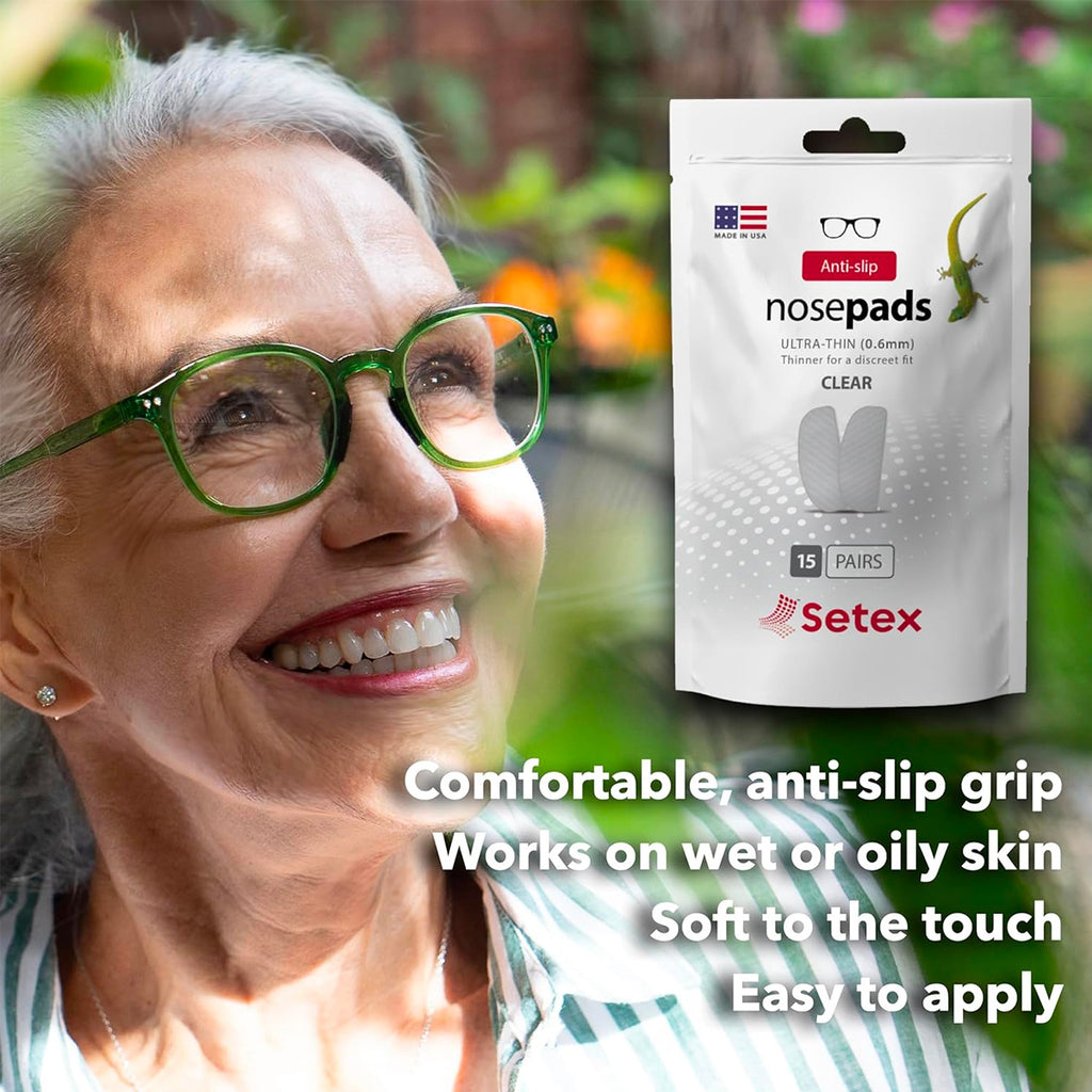 Our premium anti-slip nose pads mimic a gecko's foot fibrillar structures for a comfortable, strong grip even on wet, sweaty or oily skin. Whether you’re enjoying a book, taking a stroll in the park or working out, Setex nose pads keep your eyeglasses seamlessly in place. Ultra-thin, 0.6mm gives you a seamless feel.